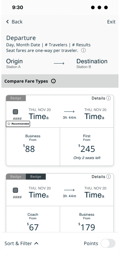 Supporting goals: Reduce booking time, increase fare confidence, simplify multi-date comparison.