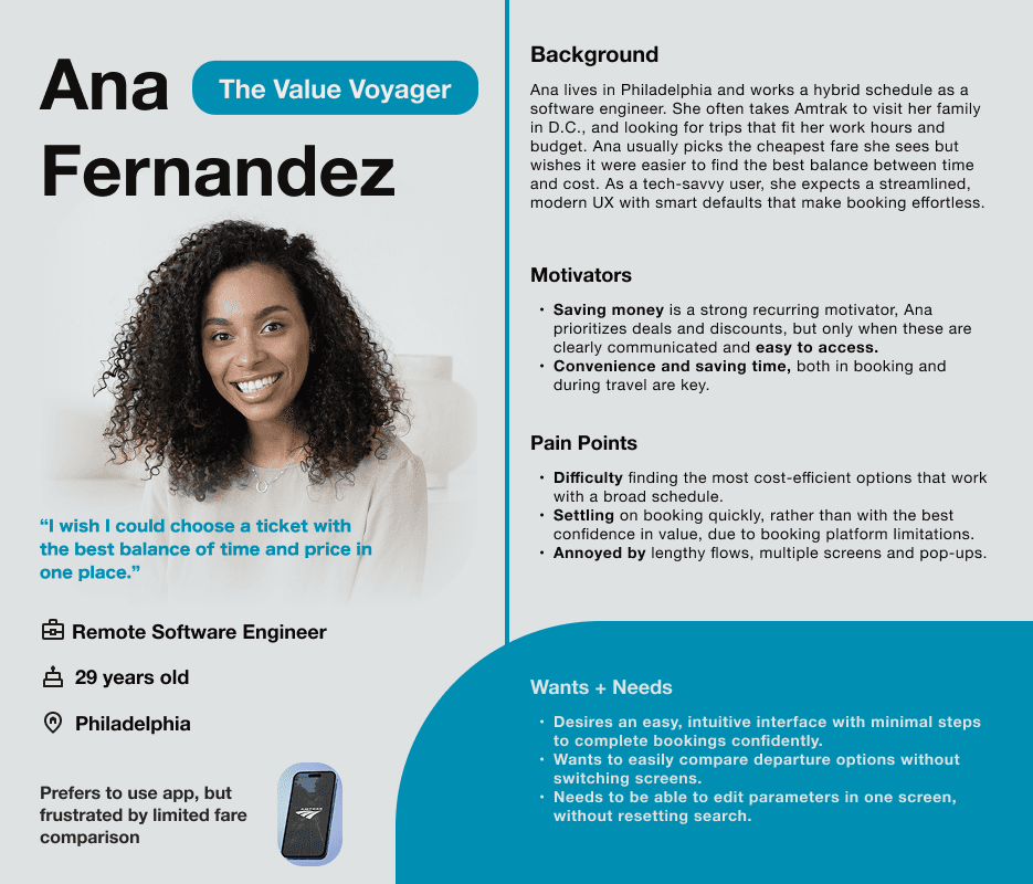 These findings reinforced the need for a fare comparison calendar that improves transparency and flexibility within Amtrak’s existing booking flow.